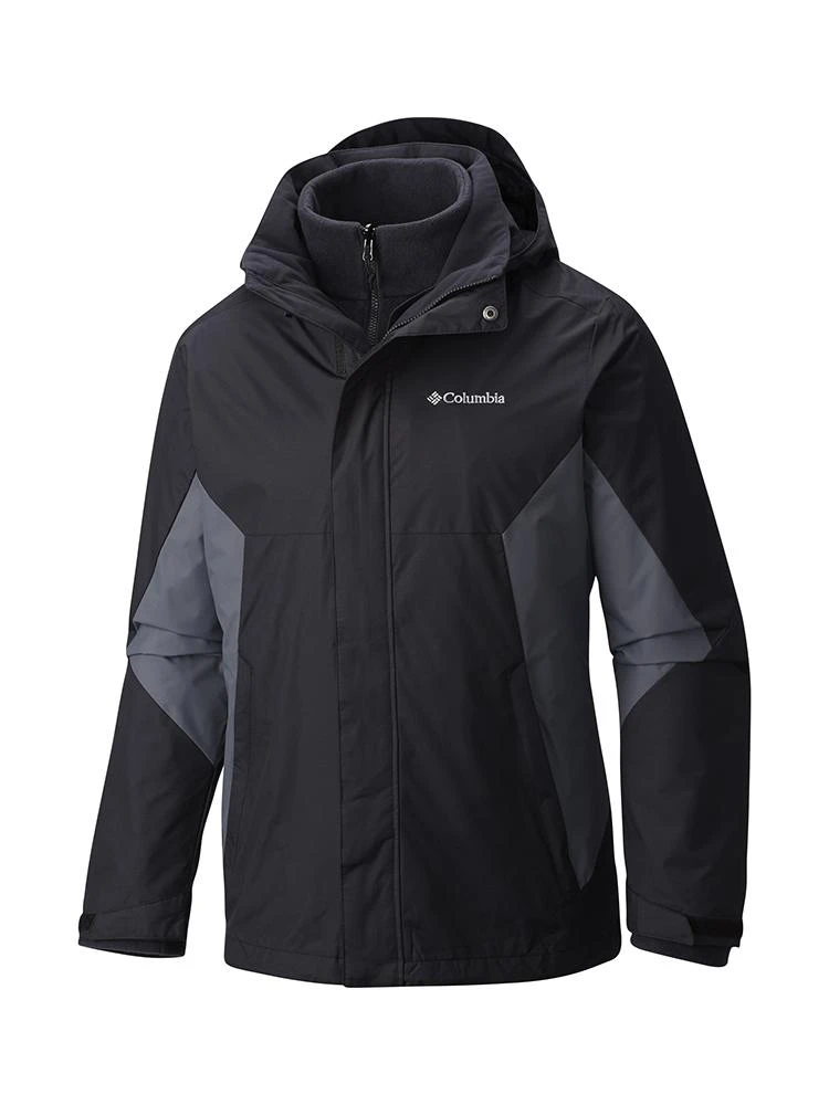 FEATURES:Zip-in and 3-point interchange systemWaterproof jacket Fleece linerRemovable, adjustable hood Interior security pocket Zippered hand pockets Adjustable sleeve cuffs Drawcord adjustable hem Drop tail Shell: 100% nylonLining: 100% nylonLiner: 100% polyester Regular fit