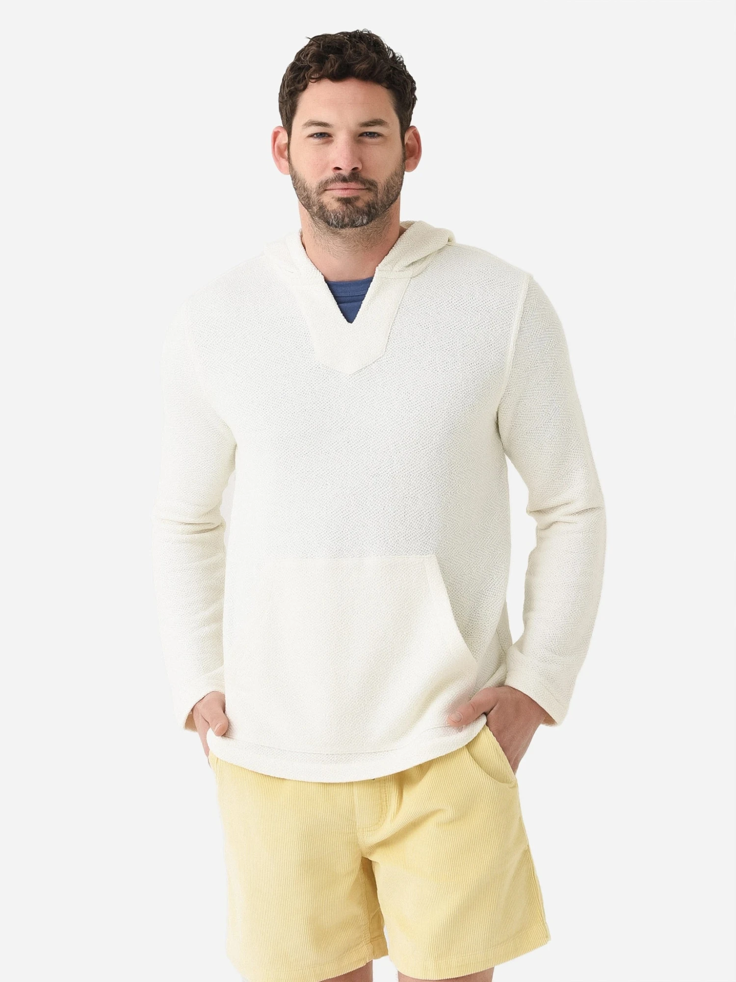 FEATURES:HoodieSplit V-NecklineLong SleeveKangaroo PocketStraight HemJacquard Fabrication74% Cotton, 26% PolyesterClassic FitModel is wearing size Medium hoodie.Model’s Measurements: Height: 6’1.5″ | Waist: 31″ | Inseam: 32″ | Collar: 16″ | Sleeve: 32″ | Suit: 40L