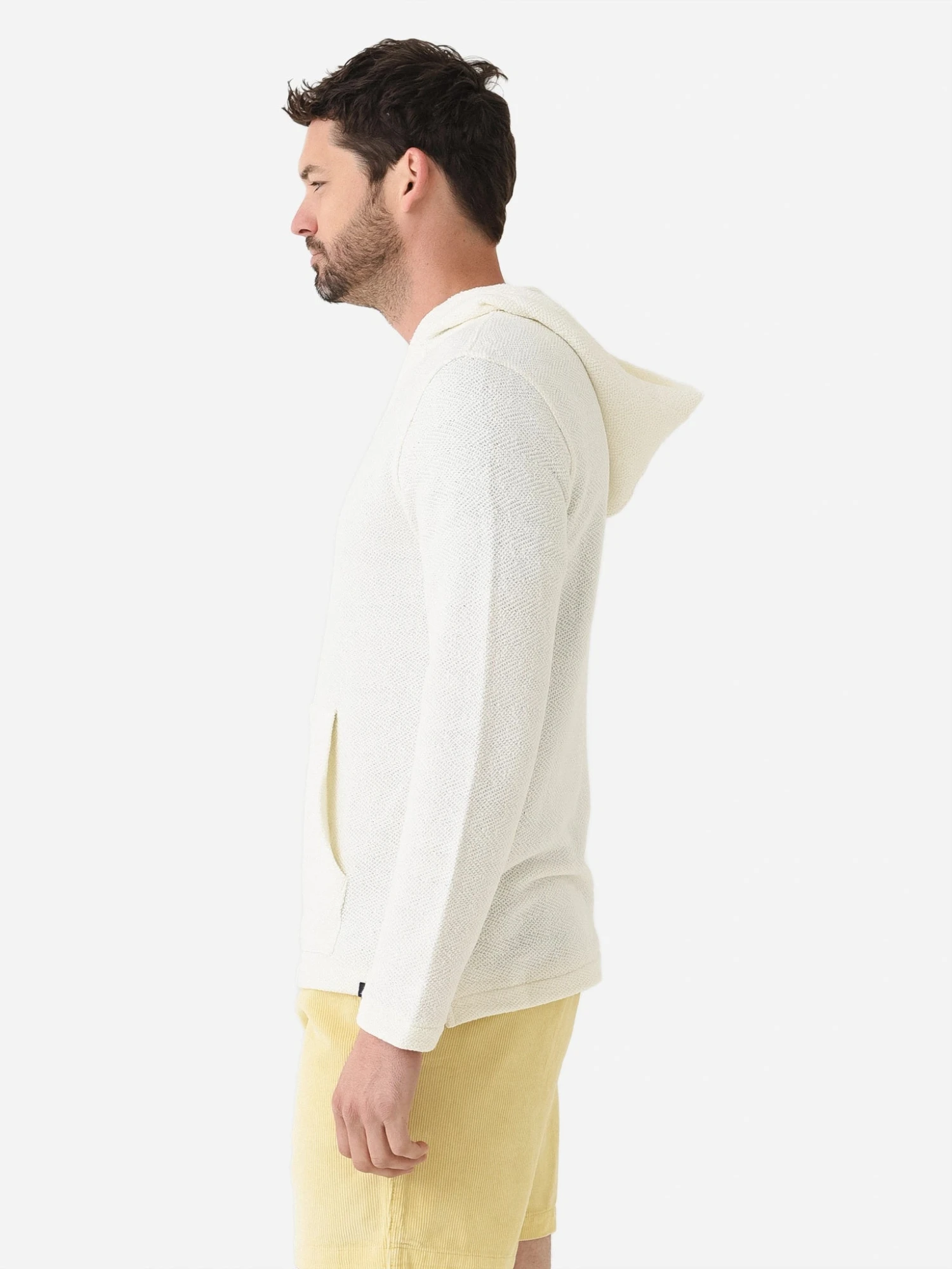 Classic hoodie made from an elevated herringbone jacquard fabric.
