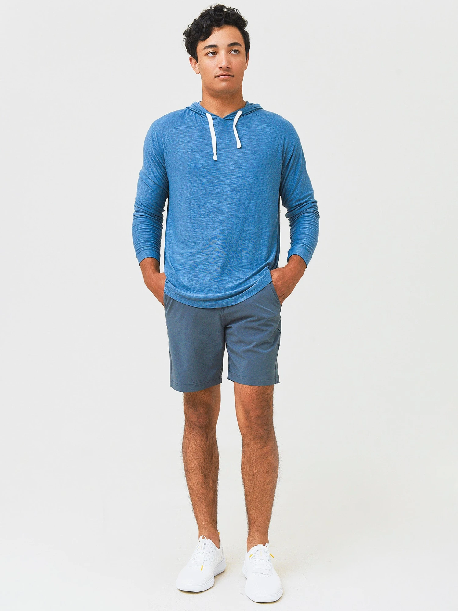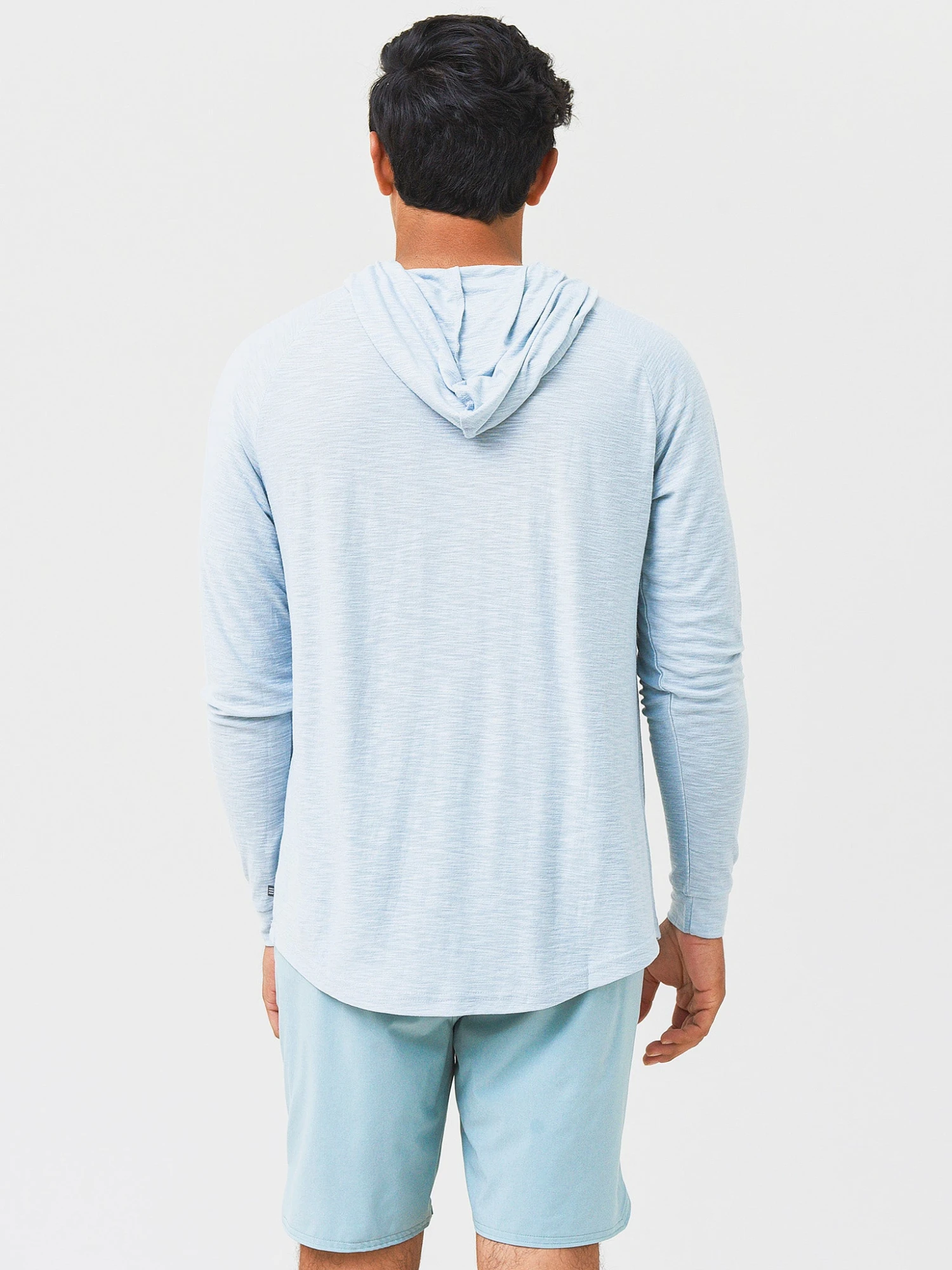 FEATURES:HoodieAdjustable DrawstringLong Sleeve with Banded CuffsSlub FabricationClassic Fit70% Viscose from Bamboo, 30% PolyesterModel is wearing size Medium hoodie.Pacific Blue, Bay Blue: Model’s Measurements: Height: 6’0″ | Waist: 32″ | Inseam: 32″ | Collar: 16″ | Sleeve: 35″ | Suit: 40L
