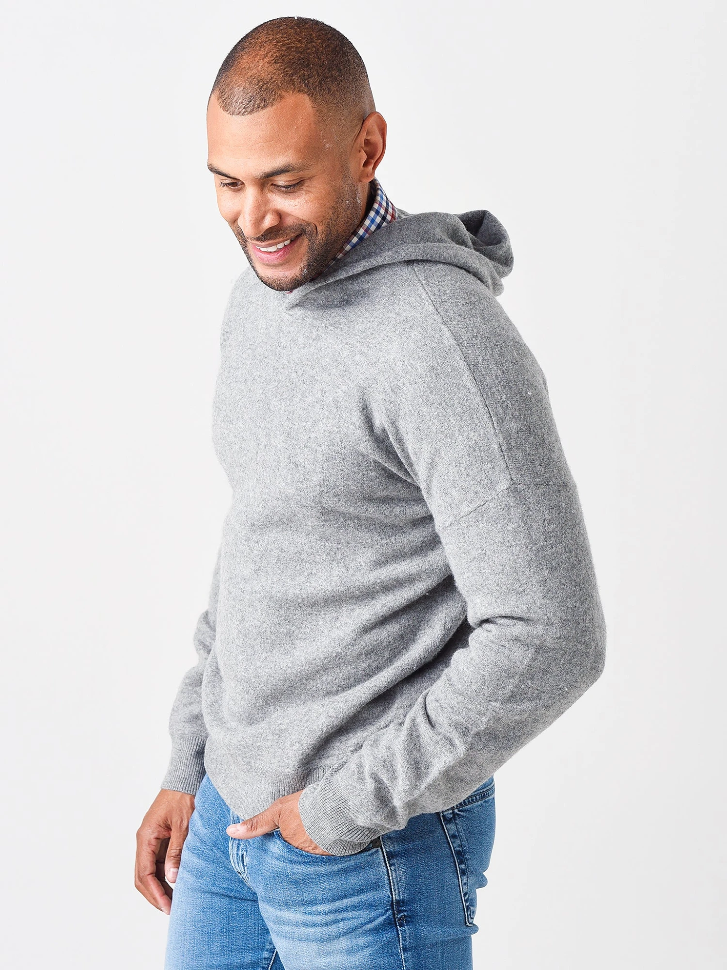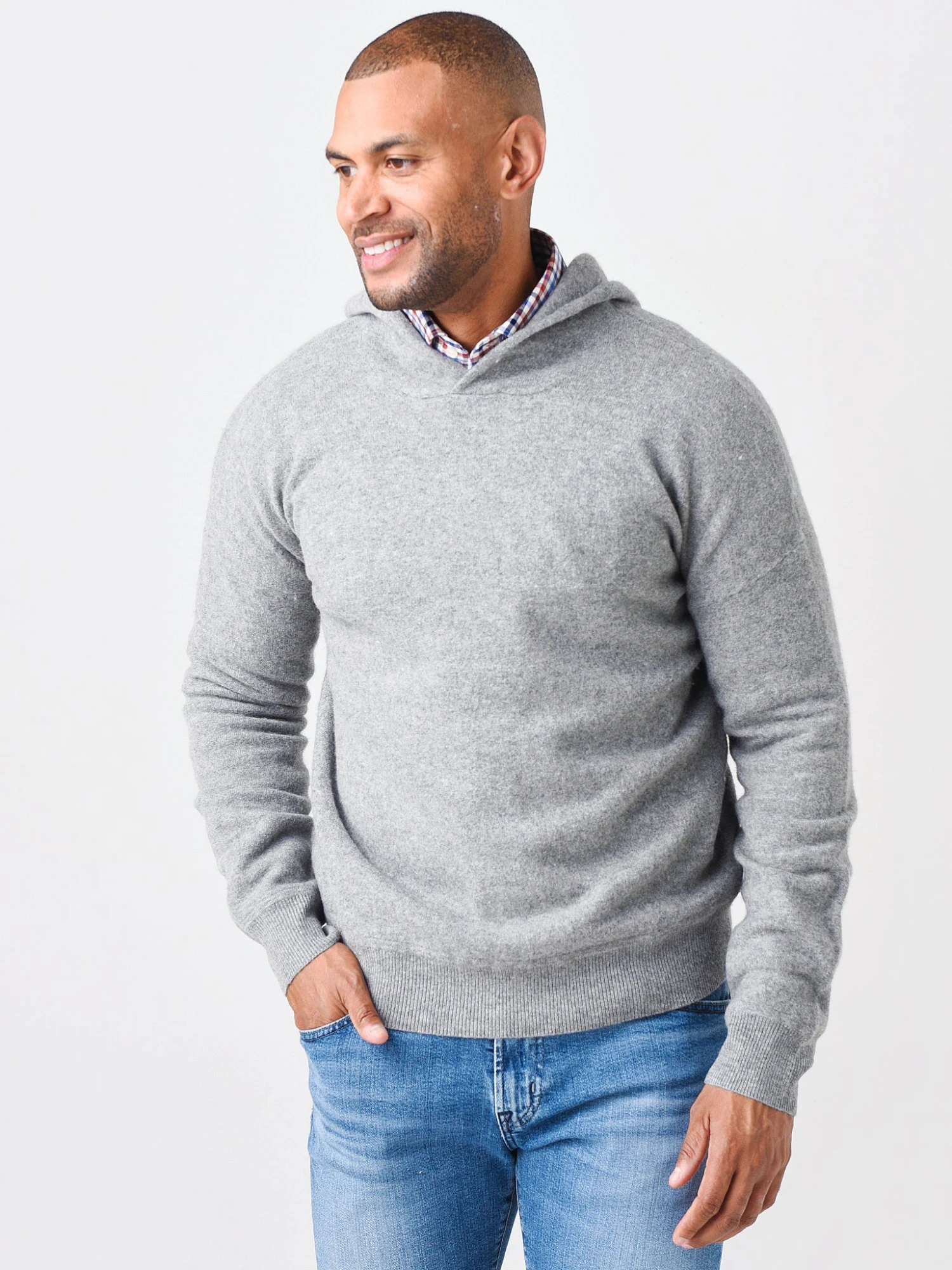 FEATURES:Pullover Hoodie SweaterHoodieDrop ShoulderLong SleeveRibbed TrimSuper Soft WoolClassic FitStraight Hem100% Merino WoolModel is wearing size Medium sweater.Model’s Measurements: Height: 5’11” | Waist: 32″, Inseam: 31″ | Collar: 14″ | Sleeve: 34″ | Suit: 41R