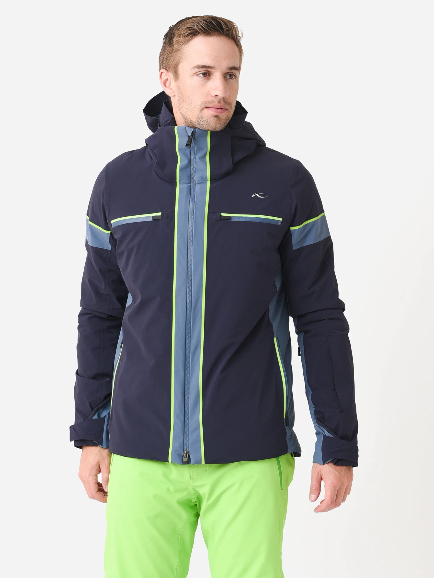 FEATURES:Ski, Snow JacketDetachable Hood with One Hand Adjustment and BrimNeck Gaiter Storage Pocket Integrated in HoodPreshaped Stand Up Collar with Chin GuardDetachable Goggle Cleaning Cloth and Money PocketPreshaped Set-In Long Sleeves with Integrated Hand GaitersChest Pocket with Water-Repellent Ykk® Zipper2-Way Water-Repellent Reversed Ykk® Zipper in Center Front4-Way Stretch Lining with 3 D-Mesh Shoulder InsertsKjus Ac-Vent™ Ventilation System with Integrated Ski Pass PocketAdjustable Hem with Quick Release Draw Cord System100% Polyester (40/60g 3 De Fx+™)Lining: 89% Polyester, 11% Elastane|85% Polyamide, 15% ElastaneModel is wearing size 52 ski jacket.Model’s Measurements: Height: 6’2″ | Waist: 32″ | Inseam: 33″ | Collar: 15″ | Sleeve: 35″ | Suit: 42L