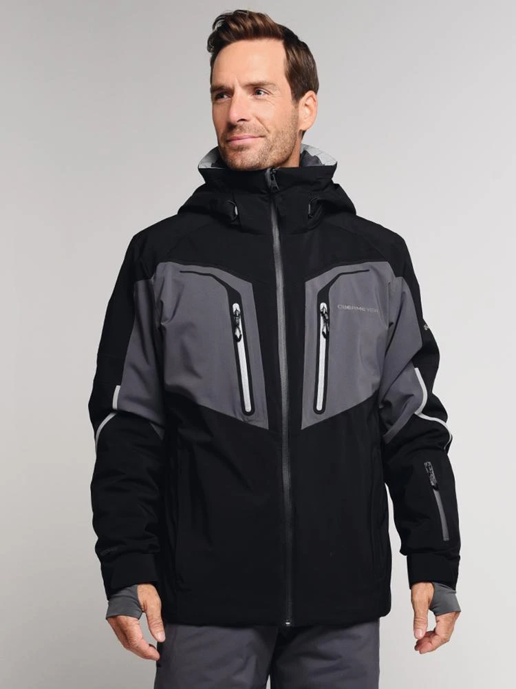 FEATURES:FABRIC: HydroBlock Elite 100% Polyester Plain Weave 2-Way Stretch with 85% Nylon, 15% Elastane 4-Way StretchINSULATION: PrimaLoft Black Hi-Loft 100gm Body, 80gm SleeveHydroBlock Prime: Obermeyer independently third party tests all of its technical fabrics for performance verification. Our high performance specialty fabrics use fully coated hydrophobic laminations and a superior DWR polymer coating for stain protection and coating integrity. HydroBlock Prime resists up to 25,000mm before water penetration while allowing 25,000 grams of water vapor to pass through within a 24-hour time frame.Fully Seam Sealed: Seams are a weak point when trying to create a completely waterproof garment. The tiny puncture holes can potentially allow water to penetrate the fabric. Seam sealing is the application of waterproof tape to the inside of the garment that aids in waterproofing.Recco Rescue Reflector: Recco is an avalanche rescue system utilized worldwide to facilitate the rapid location of burials. The two parts, reflector and detector, enable rapid pinpointing using harmonic radar but are not a substitute for transceiver use. Complementary in function, the Recco system increases the chance of being found in time.Control Zone Ventilation with Mesh Gussets: Strategically placed adjustable openings and closures for core thermal regulation. Different placements allow you to release and control your body temperature. Underarm vent zips, thigh vents, jacket closures with mesh gussets all insure the greatest flexibility while maintaining waterproof/windproof closures to meet the most challenging weather conditions and aerobic exertion.Removable Powder Skirt with Snap-Away System: A powder skirt actually performs a couple of other functions beside keeping powder snow from reaching your core section. When the skirt is snapped and in use it helps reduce heat lost from the bottom of the hem. Keeping you a bit warmer and the elements out.Full-Motion Articulation: Garments at Obermeyer are patterned for ease of movement. Extra length in sleeves and pre-curved arms are crafted to accommodate the arms’ range of motion.Adjustable cuffs with inner stretch thumbholeInterior electronics pocket with cord routing portFull-length interior windguard with fleece chin protectorFull-Motion Fusion fit – engineered construction using stretch fabric and liningAdjustable interior hem drawcordMFNG – Multi-Function NeckgaiterDetachable, scratch-free goggle clothFleece-lined collarYKK AquaGuard zippers