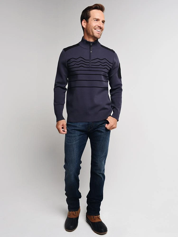 A refined after-ski sweater for lounging close to the lodge fire. Reinforced shoulder panels and zippered sleeve pocket add versatility for day-to-day use.