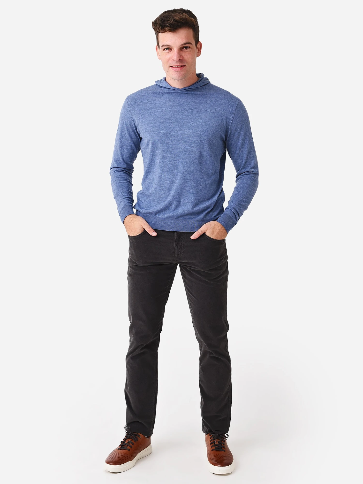 FEATURES:HoodieHigh NecklineLong SleeveStraight HemRibbed Cuffs and HemSoft Fabrication93% Merino Wool, 7% PolyesterTailored FitModel is wearing size Medium hoodie.Model’s Measurements: Height: 6’0″ | Waist: 32″ | Inseam: 32″ | Collar: 15.5″ | Sleeve: 34″ | Suit: 39L