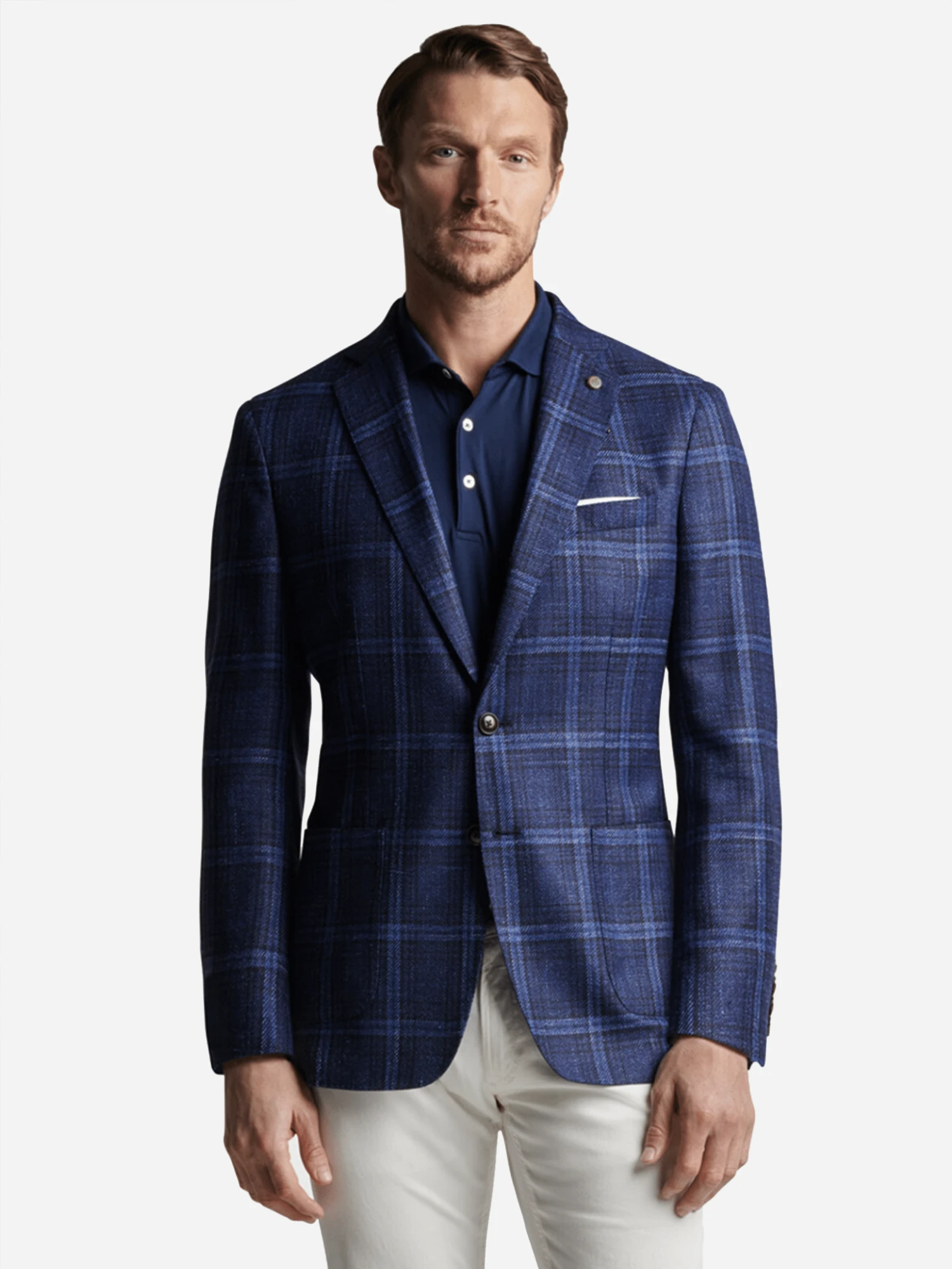 FEATURES:Sport Coat JacketNotch Lapel with ButtonLeft Chest PocketLong SleeveDouble-Button FrontFront Patch PocketsAll-Over Plaid PrintHalf Lined71% Wool, 16% Silk, 13% Linen Soft JacketTailored Fit