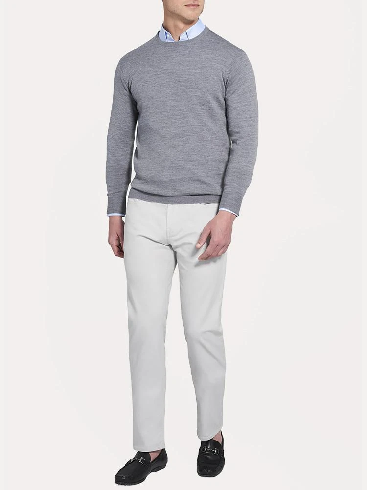 FEATURES:Men’s 85% wool / 15% silk sweaterClassic fitRibbed waist, neck and cuffsHand wash cold; lay flat to dry or dry clean
