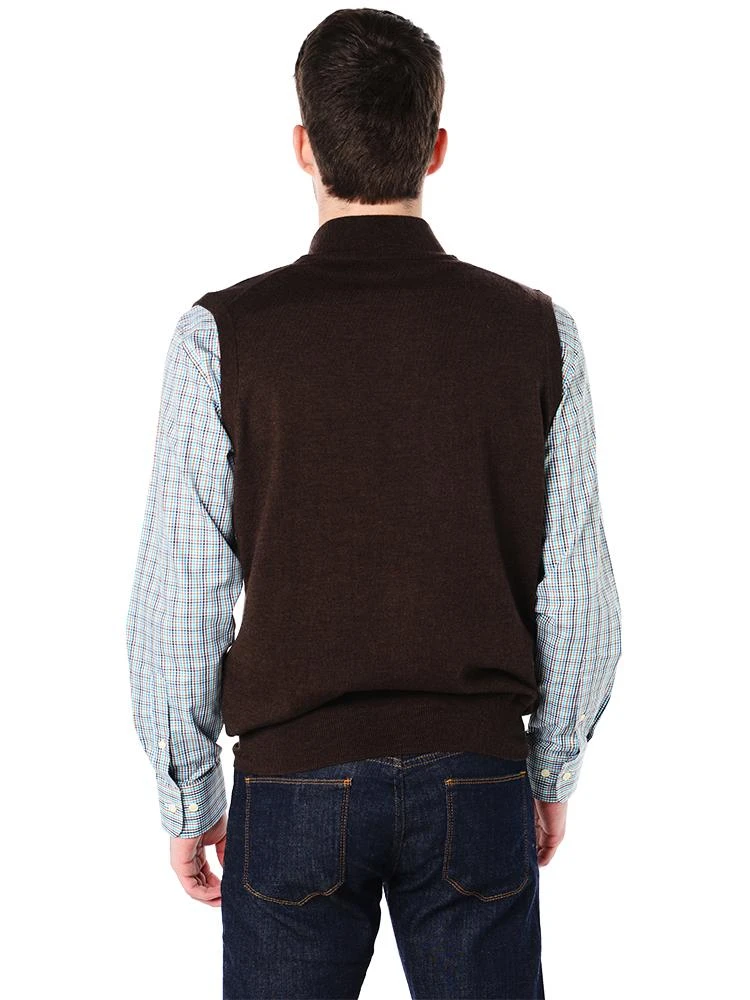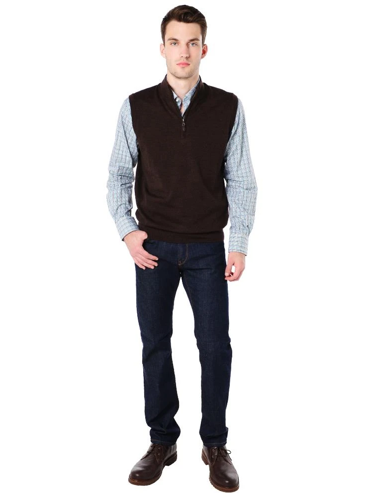 FEATURES:1/4 zip with pullRibbed trim100% merino woolDry clean onlyImportedStyled with Peter Millar Shirt Style # MF16W08CSL and Pant Style # MF16W12CBL. Model is wearing size medium shirt, vest and 32 pants.