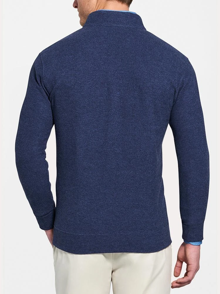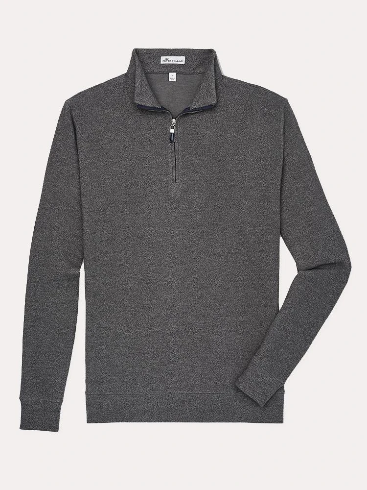 Tri-Blend Mélange Fleece Quarter-Zip is expertly crafted from a super-soft rayon, poly and cotton-blend Interlock fabric. This style features a peached finish and loft insulation. Finished with rib-knit cuffs and hem. Wear yours all fall and winter with Peter Millar sport shirts and trousers.