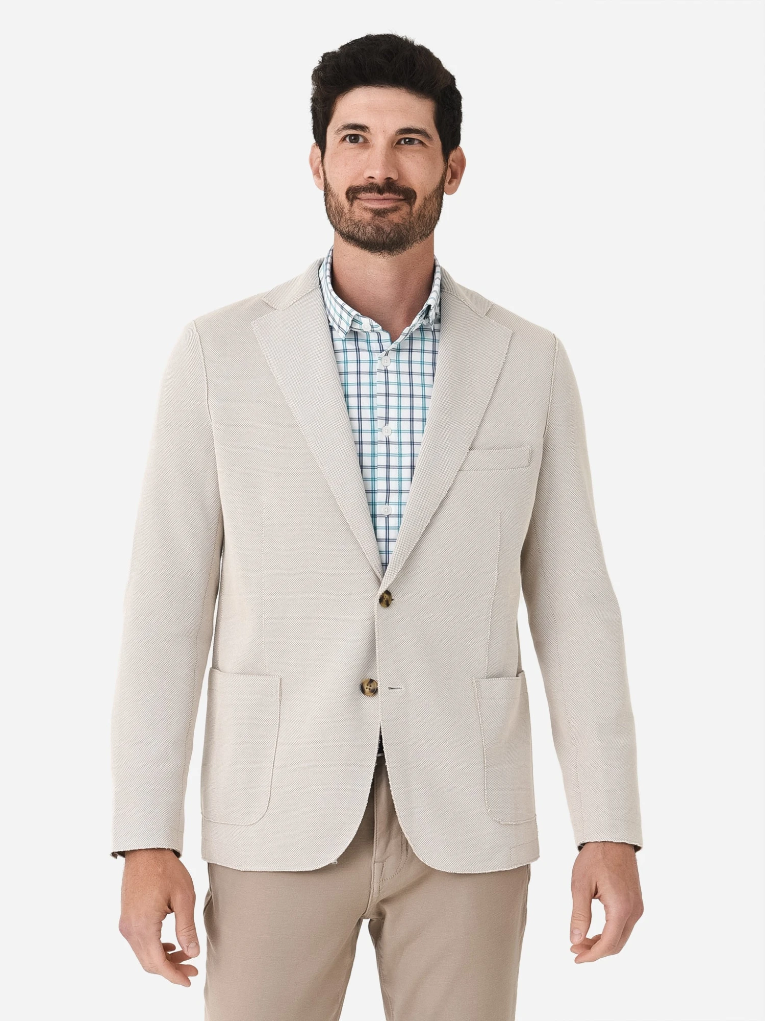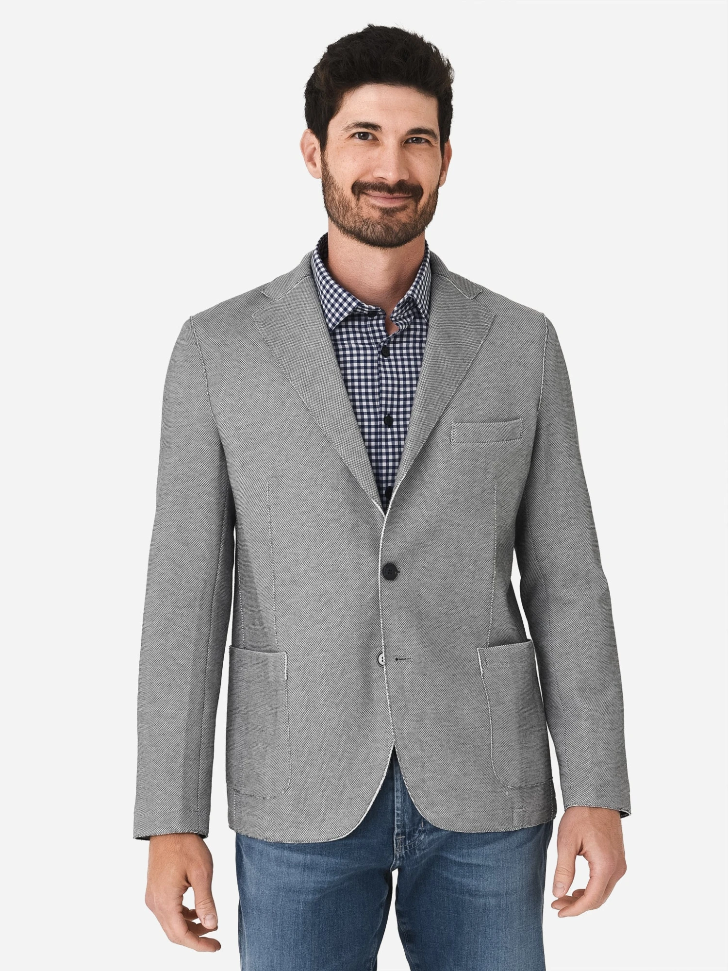 FEATURES:Sport Coat JacketNotch LapelLeft Chest PocketButton CuffsPatch PocketsInterior PocketBack Vents4-Way StretchMoisture-WickingShape RetentionJersey FabricationClassic FitModel is wearing size 40 jacket.Model’s Measurements: Height: 6’1.5″ | Waist: 32″ | Inseam: 34″ | Collar: 15″ | Sleeve: 35″ | Suit: 40L