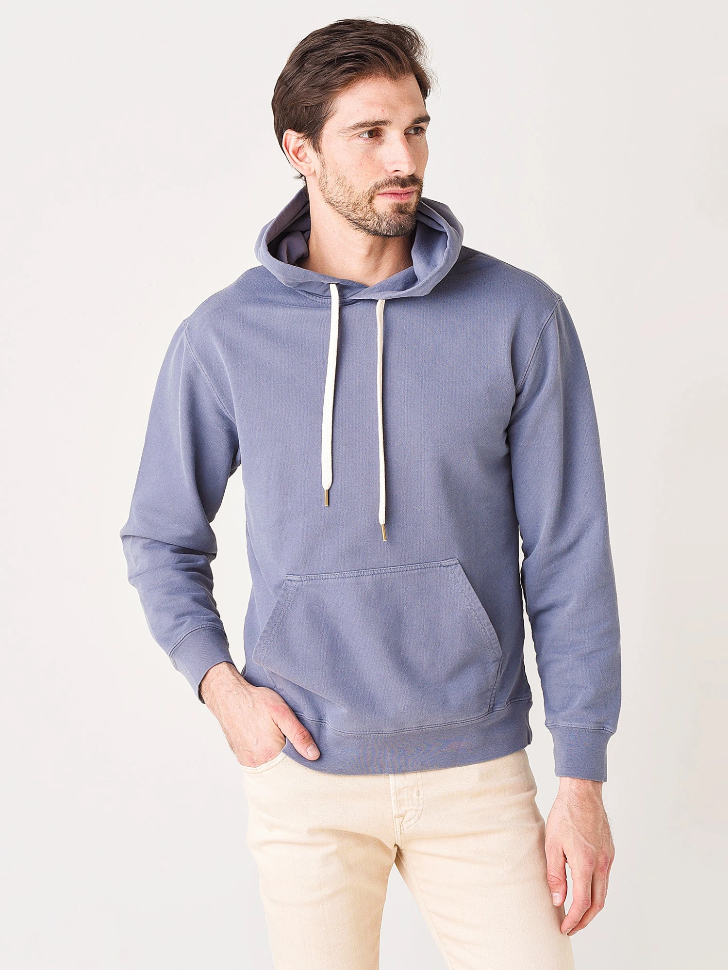 FEATURES:Hood with drawcord Front kangaroo pocket Rib trim 100% Organic CottonModel is wearing size medium sweatshirt and 32 jean. Model’s Measurements: Height: 6’3″; Waist: 32″; Inseam: 33″; Collar: 15.5″; Sleeve: 35″