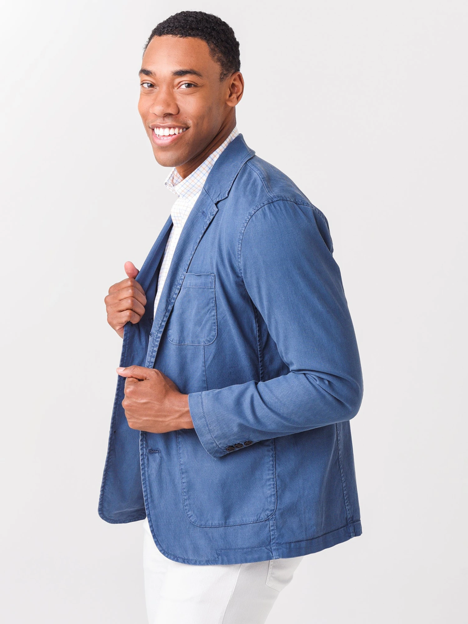 FEATURES:Blazer, SportcoatNotched-LapelsSingle Breasted, 3-Button ClosureLeft Chest PocketSide Patch PocketsInterior PocketAuthentic Horn ButtonsLinedTailored FitShell: 52% Lyocell, 45% Cotton, 3% Spandex; Lining1 : 100% Polyester; Lining 2: 100% CottonModel is wearing size Medium blazer.Model’s Measurements: Height: 6’1″; Waist: 32″; Inseam: 33″; Collar: 16.5″; Sleeve: 36″