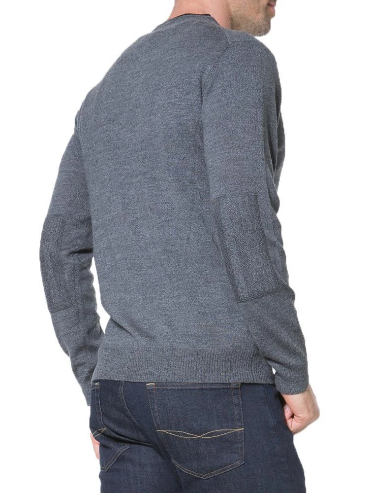 FEATURES:European yarn – 100% Merino Wool Extra fineSingle jersey knit on body and sleevesCrew neck with rolled edge on the insideTwo layer crew neck with contrast colour rib at insideOuter crew neck with rolled single jersey detailHerringbone knitted elbow patchesRibbed cuffs and waistPointer dog logo chest embroideryCare instructions: Machine wash, dry cleanModel is wearing size ME and measures: Height: 6’1in., Chest: 38in.