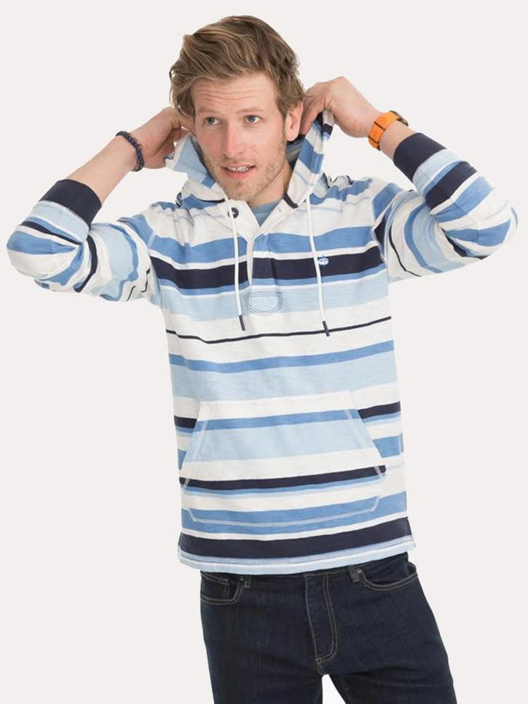 Southern Tide took the comfortable men`s hoodie you love and added broad stripes in shades of ocean blue. You`ll want to wear this casual essential all weekend long.