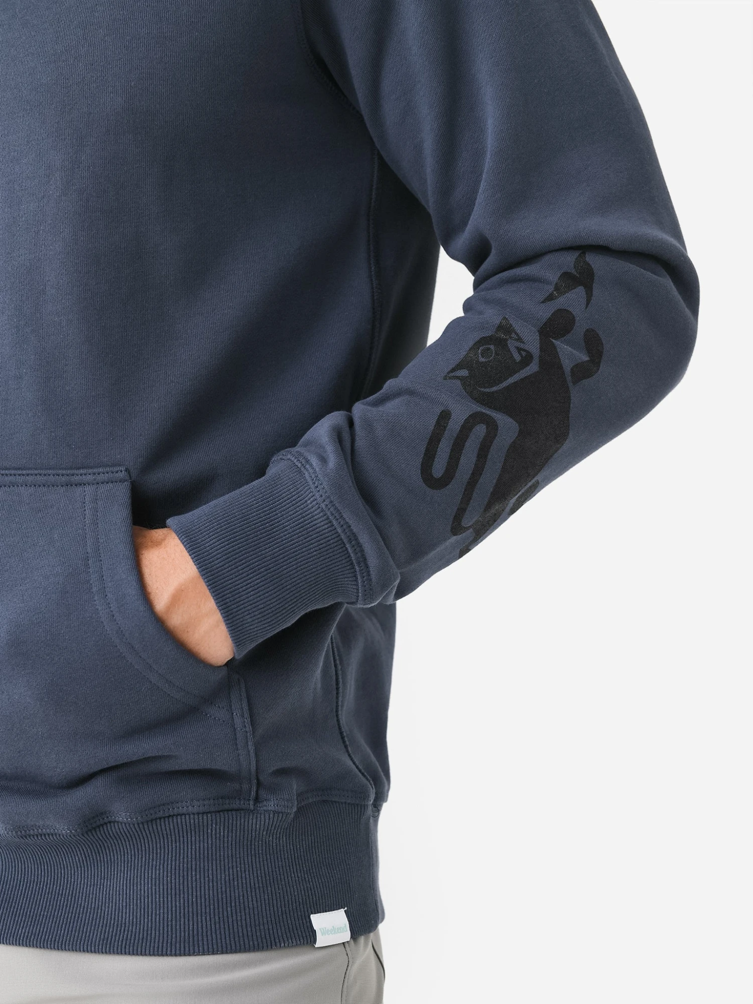 Soft pullover hoodie with custom Weekend graphics.